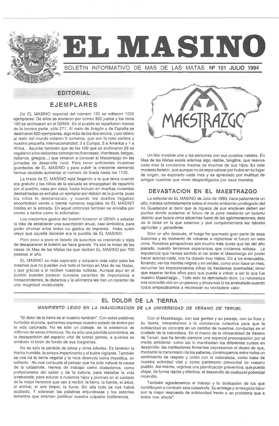 El incendio de 1994 en las páginas de El Masino