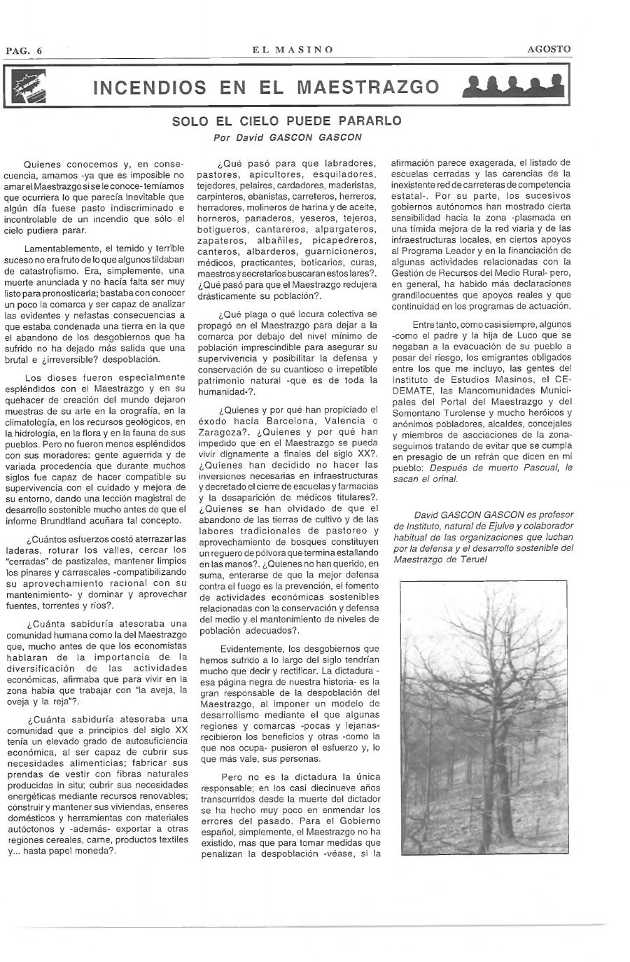 propio drama que vivió el Maestrazgo (de Teruel y Castellón) en junio de 1994.