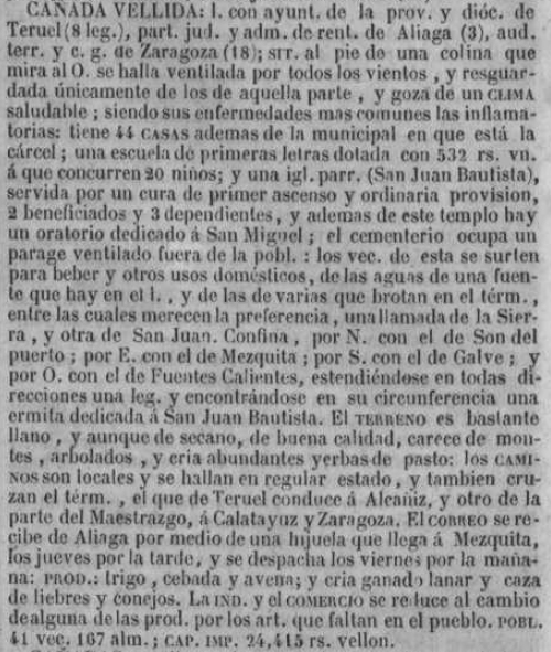 Vellida en el Diccionario de Pascual Madoz de 1845