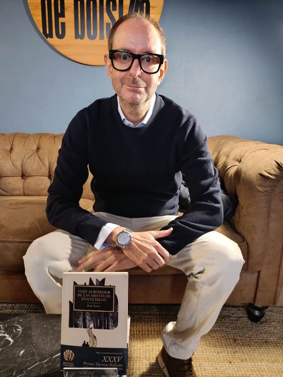 castellana con el libro “Viaje alrededor de las aristas de un cuchillo”.