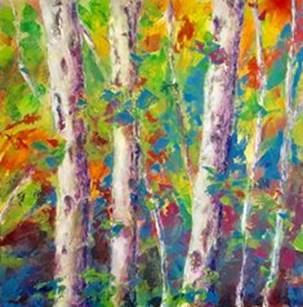 plasma en su pintura con una paleta de colores muy personal, viva y alegre, en