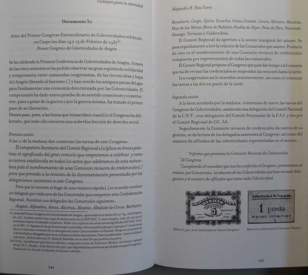 Mas de las Matas en las actas del Primer Congreso Extraordinario de Colectividades en Caspe en febrero de 1937